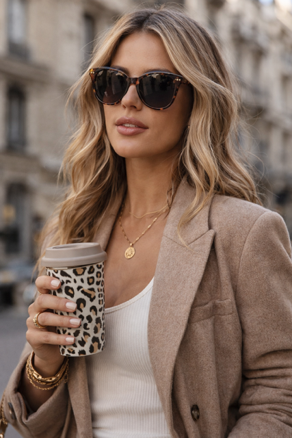 Są osoby, które piją kawę… i są takie, które robią z tego moment. Ten zestaw należy do tej drugiej kategorii. Panterka nie jest tu dodatkiem – to sygnał stylu, który widać od razu. Kiedy pojawia się w Twojej dłoni, zwykłe „coffee to go” zamienia się w coś, co spokojnie mogłoby znaleźć się na zdjęciu z Pinteresta albo feedzie topowej influencerki.