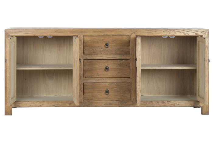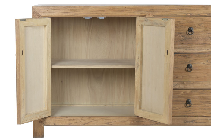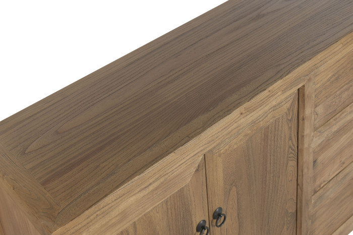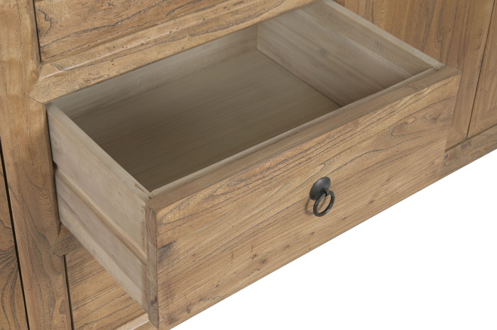 Każdy element tej komody powstał z drewna pochodzącego z recyklingu, które wcześniej było częścią innych struktur i historii. To właśnie dlatego powierzchnia nie jest idealna — i w tym tkwi jej wartość. Subtelne różnice w tonacji, ślady użytkowania i naturalna nieregularność sprawiają, że każdy egzemplarz jest unikalny i niepowtarzalny. Takie drewno nadaje wnętrzu autentyczność i głębię, której nie da się stworzyć od nowa .