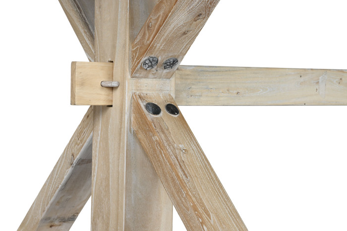 Ten model został wykonany z drewna pochodzącego z recyklingu, a więc materiału, który ma własną historię, własny rytm i własną niepowtarzalność. Bielone wykończenie pięknie wydobywa rysunek drewna, podkreśla jego strukturę i nadaje całości bardziej miękkiego, eleganckiego wyrazu. To właśnie dzięki temu każdy egzemplarz wygląda autentycznie i szlachetnie — nie jak produkt masowy, lecz jak mebel wybrany świadomie.