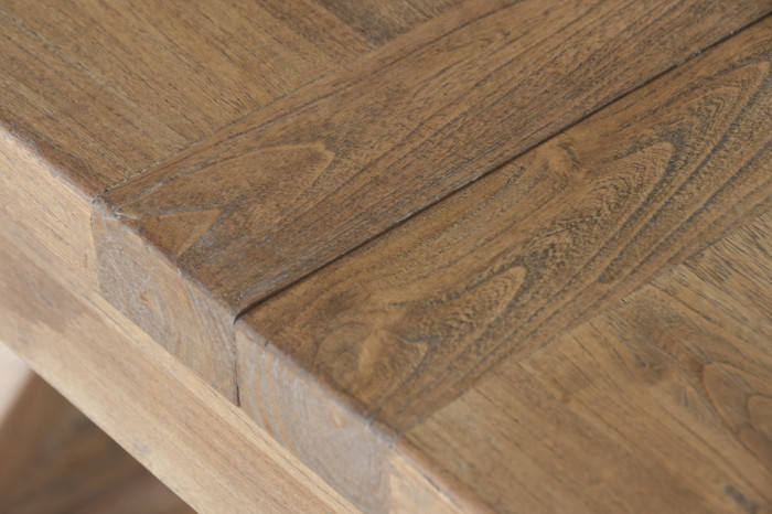 Wykonany z drewna pochodzącego z recyklingu, niesie w sobie ślady wcześniejszych miejsc i czasu. Naturalne różnice w strukturze, delikatne przebarwienia i nieregularności sprawiają, że każdy egzemplarz jest jedyny w swoim rodzaju. To materiał, który nie udaje perfekcji — i właśnie dlatego wprowadza do wnętrza prawdziwą głębię i charakter.