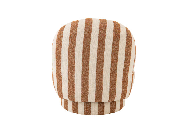 Wyraziste, pionowe pasy prowadzą wzrok, podkreślając obłą, miękką sylwetkę fotela. To nie jest przypadkowy wzór – to kompozycja, która nadaje bryle dynamiki, a jednocześnie zachowuje elegancję. Tkanina o przyjemnej, strukturalnej fakturze dodaje głębi i sprawia, że światło subtelnie podkreśla każdy detal.