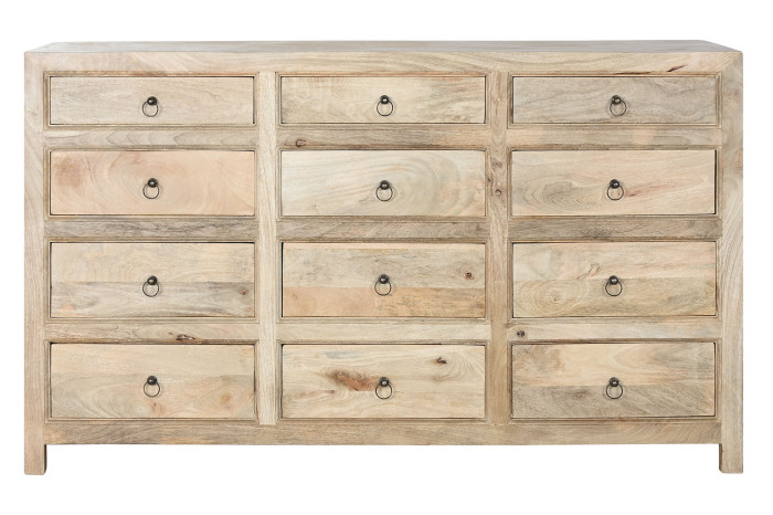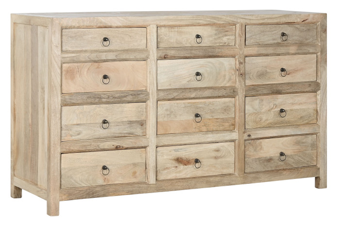 Dwanaście szuflad to przestrzeń, która pozwala uporządkować codzienność bez kompromisów. Każda rzecz ma swoje miejsce – drobiazgi, tekstylia, dokumenty, przedmioty, które chcesz mieć blisko, ale niekoniecznie na widoku. Delikatne uchwyty z patynowanego metalu podkreślają charakter całości, pozostając jedynie subtelnym detalem.