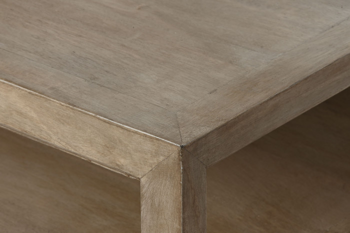 Drewno mango zachowuje swój autentyczny rysunek – widoczne usłojenie, subtelne różnice tonów, nieregularności wynikające z naturalnego pochodzenia materiału. Każda ława różni się detalem, choć forma pozostaje niezmienna. To element kolekcji Slowood, w której materiał odgrywa pierwszoplanową rolę.