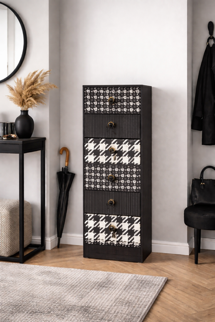 Komoda Patchwork Pepita świetnie sprawdzi się w pokoju dziecięcym urządzonym w stylu nowoczesnym lub eklektycznym. Jej niezwykły wygląd z motywem pepitki i kolorowych wzorów sprawi, że pokój zyska niepowtarzalny charakter. To nie tylko miejsce na ubrania i zabawki, ale również mebel, który rozbudza dziecięcą wyobraźnię i staje się inspiracją do zabawy.