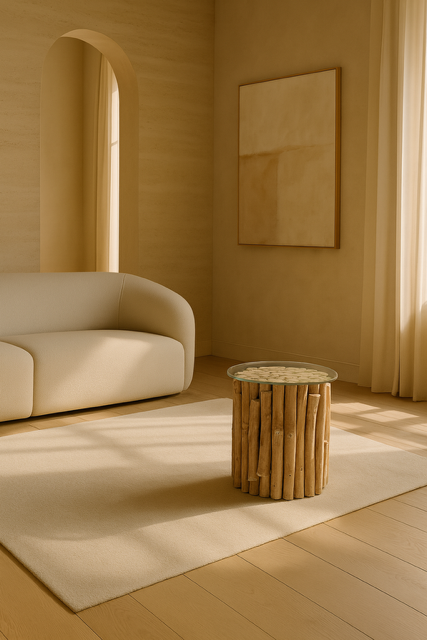 Szkło hartowane w blacie stolika nie tylko nadaje mu nowoczesnego charakteru, ale również zapewnia trwałość i bezpieczeństwo. Drewno, z którego wykonany jest trzon, uwydatnia naturalną strukturę, z widocznymi sękami i nierównościami, co dodaje stolikowi unikalności. Połączenie tych dwóch materiałów sprawia, że stolik Flint Stone Driftwood łączy w sobie elegancję z ciepłem drewna, tworząc mebel, który wpisuje się zarówno w nowoczesne, jak i rustykalne aranżacje.