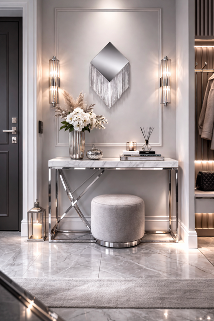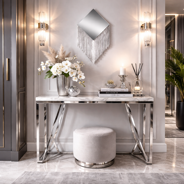 Lustro z frędzlami w kolorze szarym doskonale komponuje się z wnętrzami urządzonymi w stylu glamour, gdzie błyszczące i luksusowe elementy odgrywają kluczową rolę. Jego geometryczny kształt i delikatne frędzle świetnie pasują także do nowoczesnych aranżacji, gdzie staje się wyrazistym akcentem, który przyciąga uwagę i dodaje wnętrzu niebanalnego charakteru. W stylach eklektycznych lustro to doskonale łączy różne faktury i materiały, tworząc spójną, artystyczną kompozycję. Lustro z frędzlami to dekoracja, która nadaje wnętrzu nowoczesny, stylowy charakter i przyciąga spojrzenia swoim unikalnym designem.