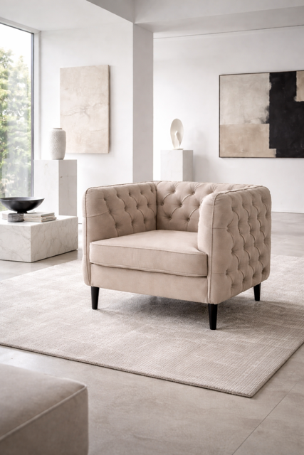 Wprowadź do swojego wnętrza odrobinę klasycznej elegancji z Fotelem Karl w typie Chesterfield. Ten luksusowy fotel łączy w sobie ponadczasowy design z nowoczesnym komfortem, stając się wyjątkowym elementem każdego pomieszczenia. Jego charakterystyczne pikowania i wysokiej jakości wykończenia podkreślają dbałość o detale, czyniąc go prawdziwym symbolem wyrafinowania.