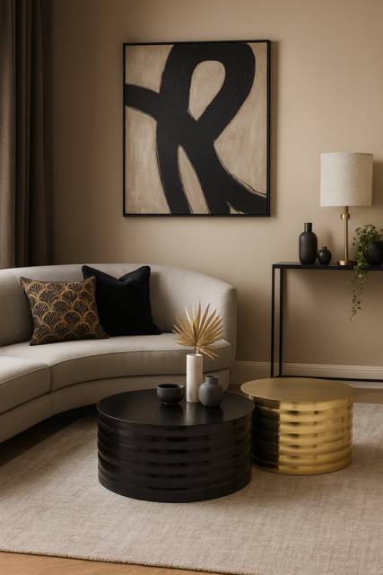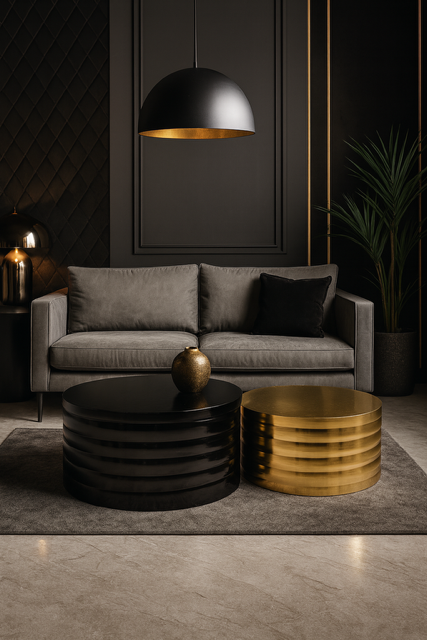 Zestaw stolików beczka w kolorze czarnym i złotym to doskonały przykład nowoczesnego designu, który łączy funkcjonalność z wyrafinowanym stylem. Ich opływowe kształty i błyszczące wykończenie wprowadzą do każdego pomieszczenia niepowtarzalny klimat. Czarna powłoka, harmonizująca z błyskiem złota, tworzy elegancką kompozycję, która zwraca uwagę i dodaje charakteru. Te stoliki są również praktycznym elementem wyposażenia, który z powodzeniem sprawdzi się w różnorodnych aranżacjach.